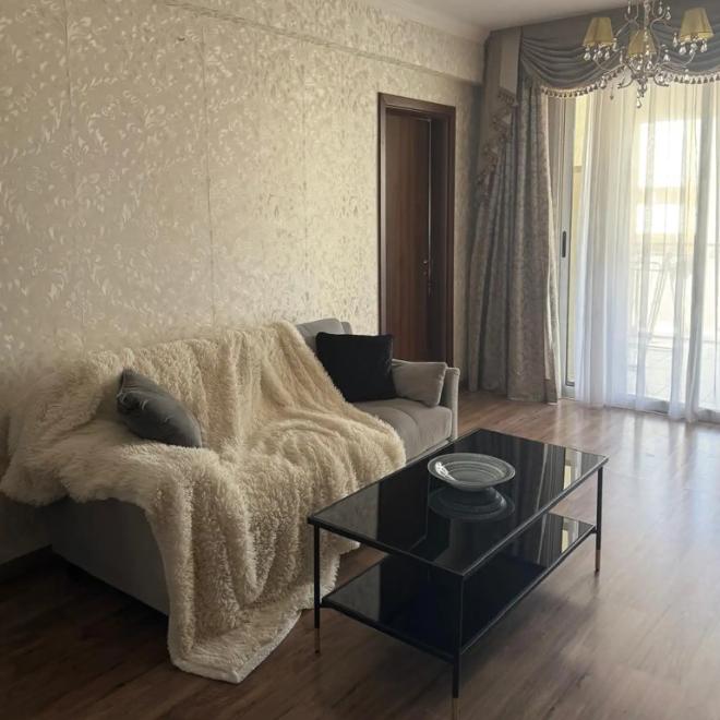 A three-bedroom apartment is for rent in Potamos Germasogeias, Limassol. The apartment is fully furnished, with a total area of 115 m² and an additional 10 m² balcony. The layout includes three bedrooms, a master bedroom with an en-suite bathroom, and a second bathroom. Air conditioning and electric underfloor heating are installed. It is located on the first floor of a two-story building with six apartments and an elevator, offering a storage room for residents and a gated covered parking space for two cars.