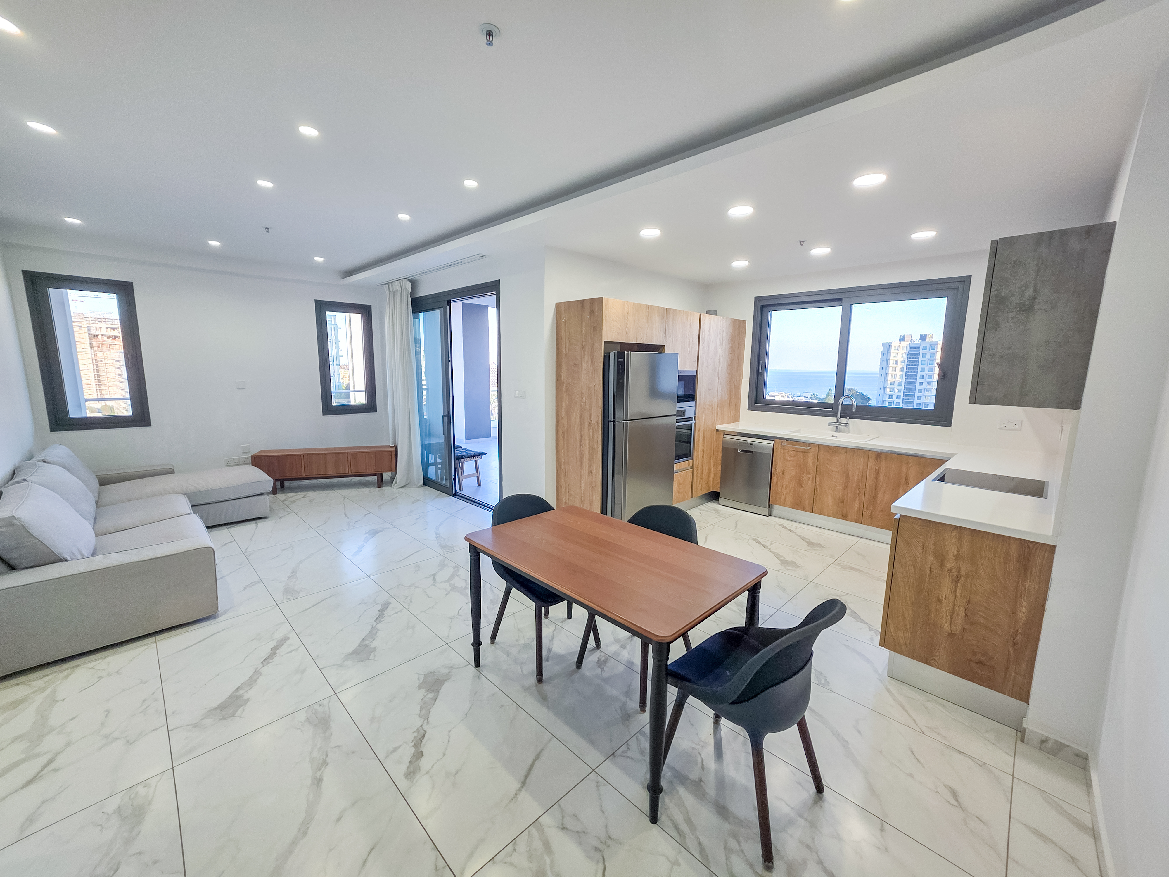 Three-bedroom apartment with a total area of 140 m2 for rent in Mouttagiaka, Limassol. The apartment includes three bedrooms, two bathrooms, a kitchen, a living room, a balcony, a storage room and a covered parking space. The property is fully furnished and equipped with household appliances, air conditioners are installed in all rooms, underfloor heating, elevator with direct access to underground Parking, storage room is provided. The living area is 106 m2, the veranda with sea view is 34 m2. The complex is a 13-storey residence with panoramic sea views and includes a resort pool with a sunbathing area, a fully equipped gym, a tennis court, spacious manicured gardens, a playground, an enclosed area, a CCTV system, two elevators, secured underground parking spaces for residents and 18 guest parking spaces at ground level. There are supermarkets, a pharmacy, a flower shop, a cinema, cafes, pubs and restaurants in the immediate vicinity. The house was built in 2021, energy efficiency cl